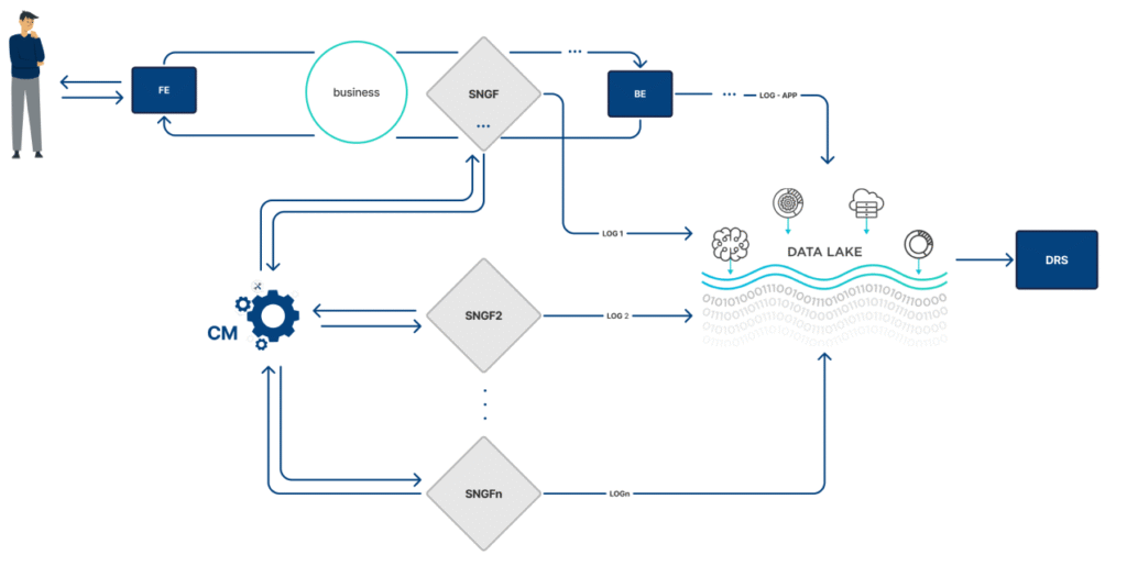 برای مدیریت SNGFها، سامانه مدیریت متمرکز (CM) وجود دارد که به منظور نظارت، مدیریت و بهینهسازی عملکرد مجموعهای از فایروالهای لایه 8 طراحی شده است. این سامانه امکان رصد، کنترل و هدایت فرآیندهای مختلف اکوسیستم را به صورت بلادرنگ فراهم میکند.