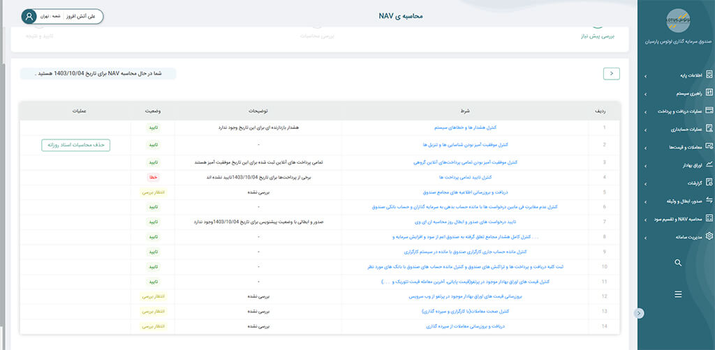 - محاسبه NAV به تفکیک تمامی فاکتور های تاثیر گذار