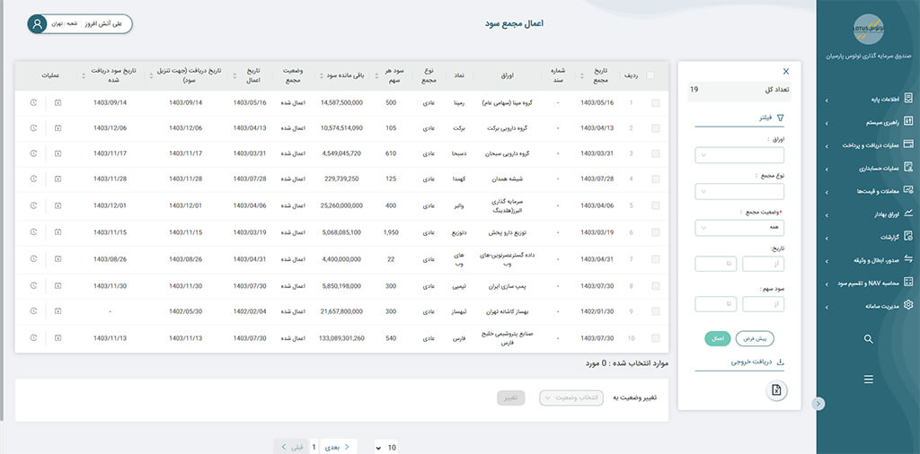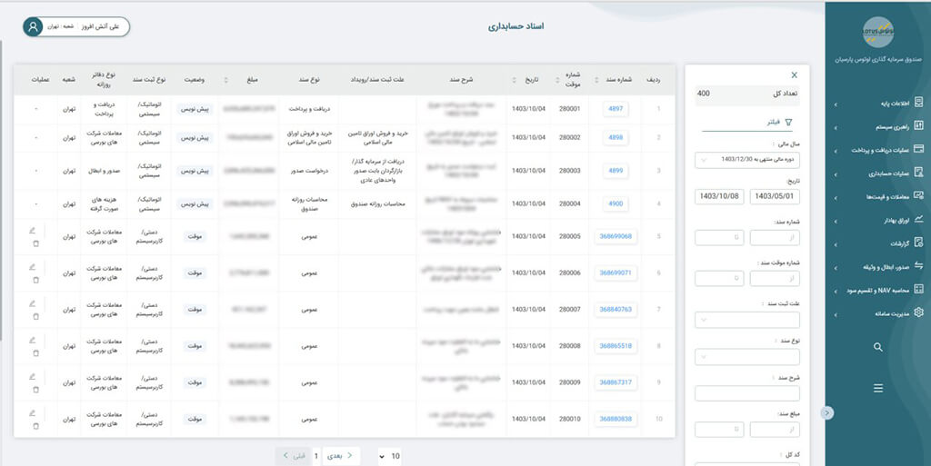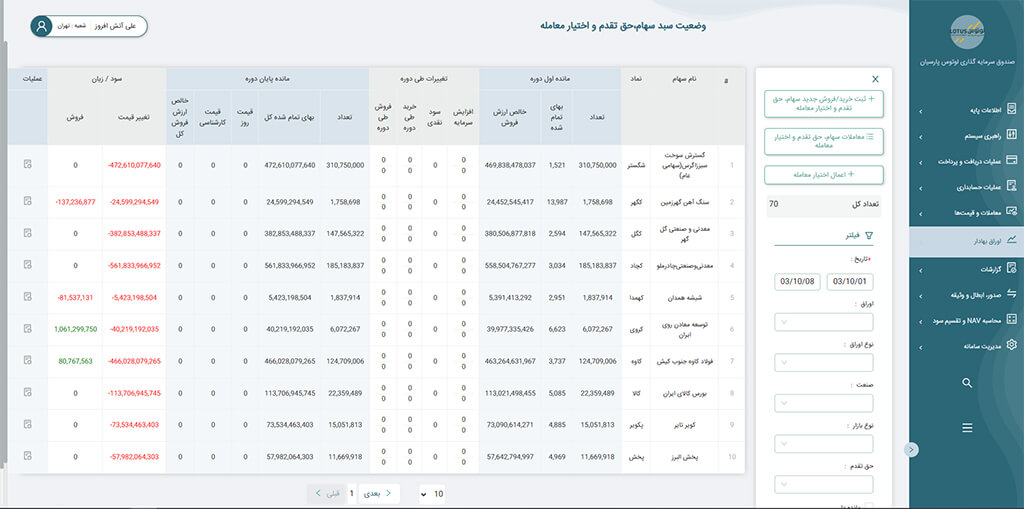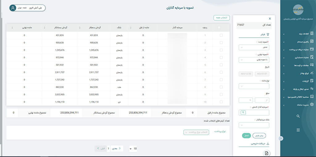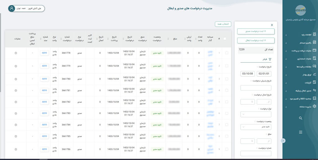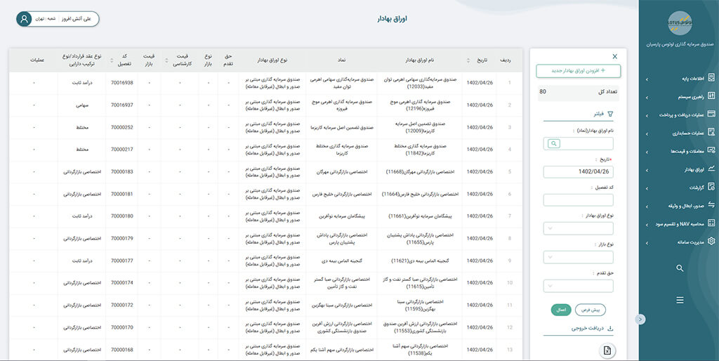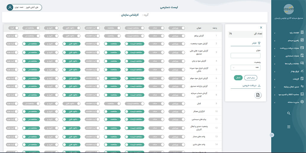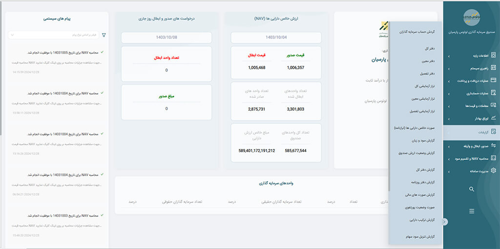 امکان تولید گزارش های دقیق و سفارشی برای مدیران و سهامداران صندوق ها.